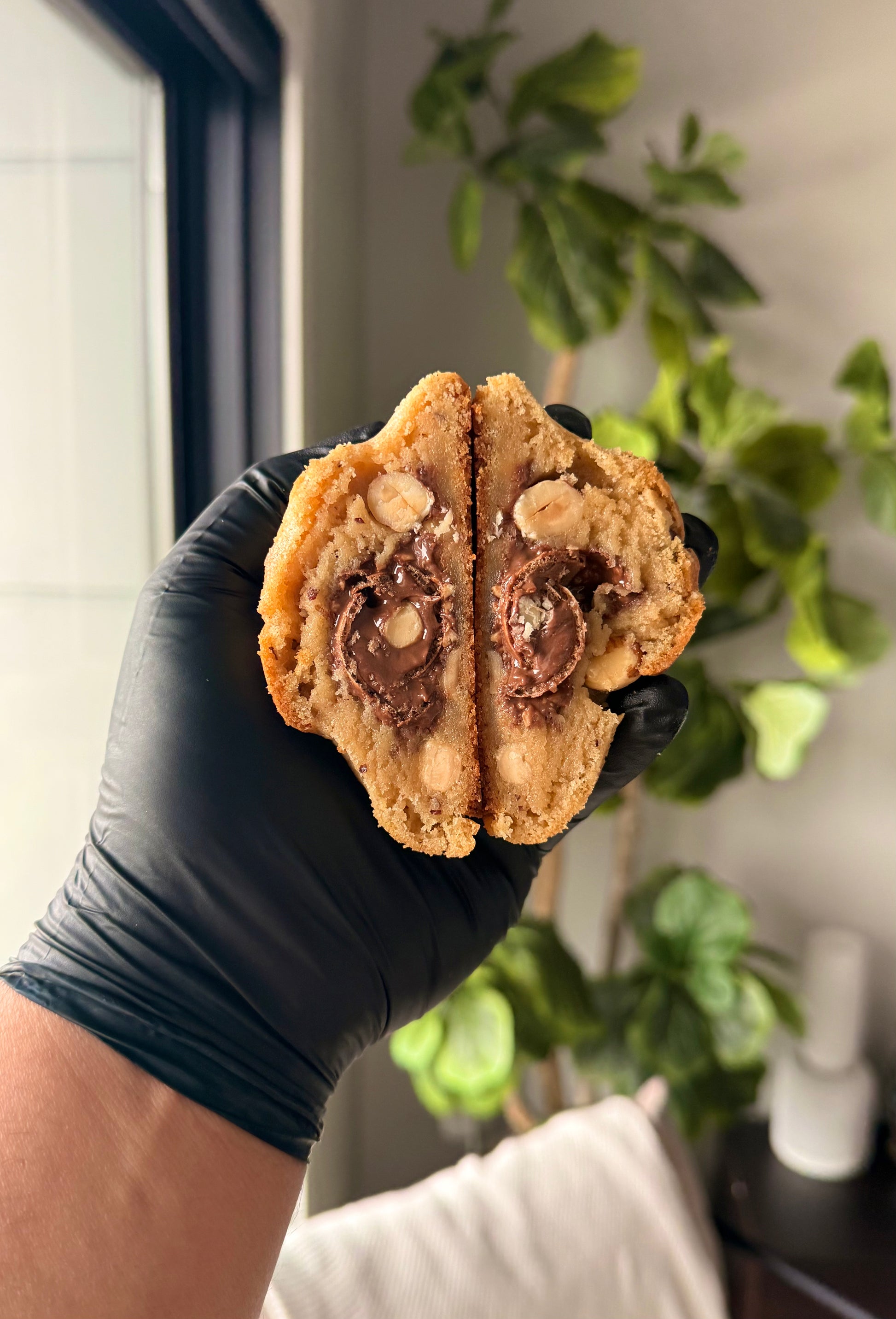Chocolate chip and hazelnut cookie filled with a whole Ferrero and Nutella.